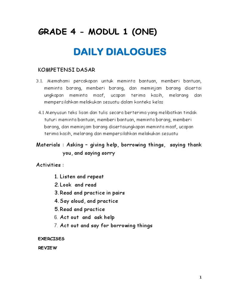 Modul 1 B Inggris Kelas 4 Kd 3 1 4 1 Pdf Graphite Tools
